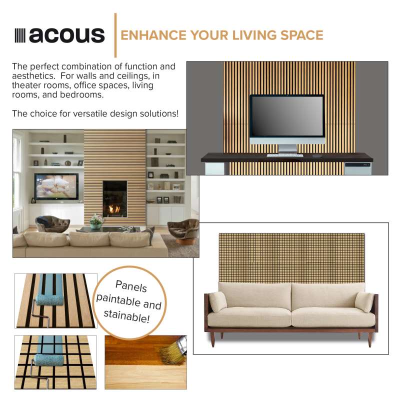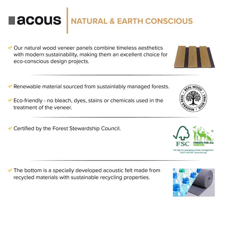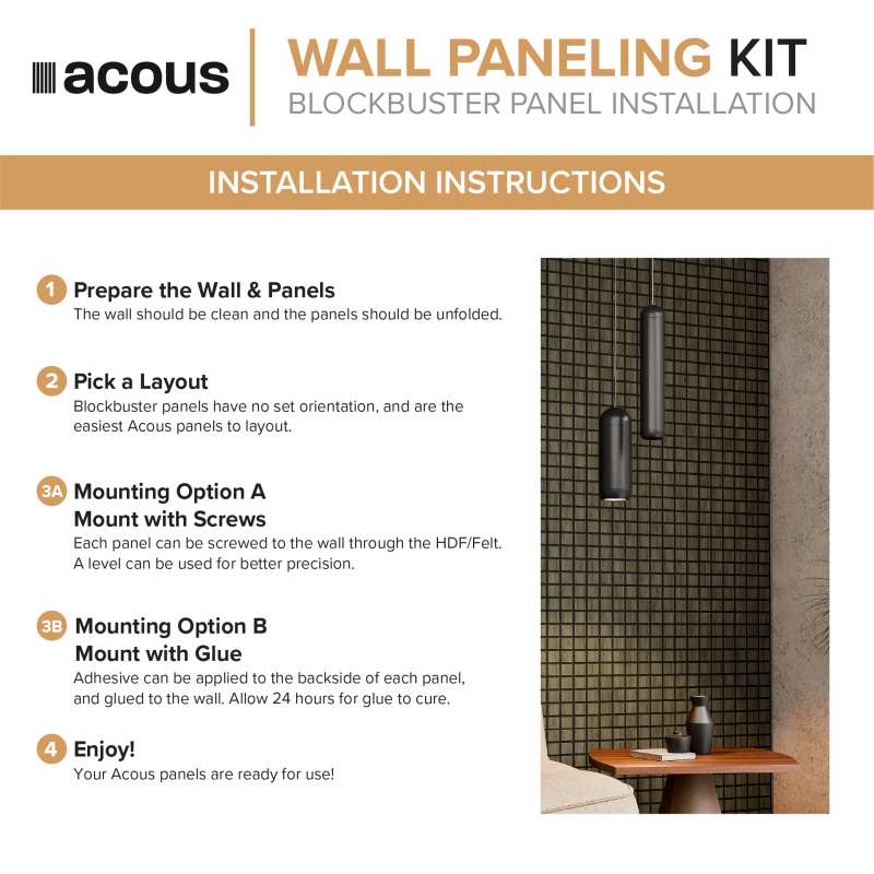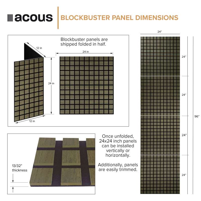Acous Blockbuster panels will create the perfect effect in any room. Crafted with FCS -certified 9C017145) brushed real oak wood and featuring an attachment to a 0.16 inch acoustic felt base, the panels will provide an impressive visual impact as well as deliver a sound-absorbing effect. There is no installation limit to height or width with Blockbuster.