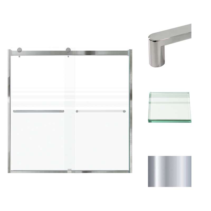 The Transolid Brianna Frameless Double Sliding Shower Door Collection offers an elegant, sophisticated look. It is available in several width and height combinations and features thick, premium 5/16 in. (8mm) frosted tempered glass with professionally applied Nano clear glass coating, which provides superior dirt and water repellant and stain resistant benefits. The Brianna door provides up to 3/8 in. of out-of-plumb adjustability on each side to provide a watertight fit in your alcove. The Brianna door is available in several desirable hardware finish options to match your bathroom's interior design and layout perfectly. Built for an alcove (3-wall) shower enclosure, sliding glass shower doors can be opened from left or right with its full by-pass (both panels slide) design. 20 in. (500 mm from center to center) sliding shower door handles also function as towel bars, providing handy storage space for a folded bath towel or two hand towels. Multiple Transolid handle options are available, but this combination features the Riley handles in a beautiful Polished Chrome finish. The Riley handles feature a unique, high-end design, adding a distinctive look to your Brianna shower door. These handles are substantial in weight and are every bit as functional as they are beautiful. Look for the matching grab bar to complete the look!