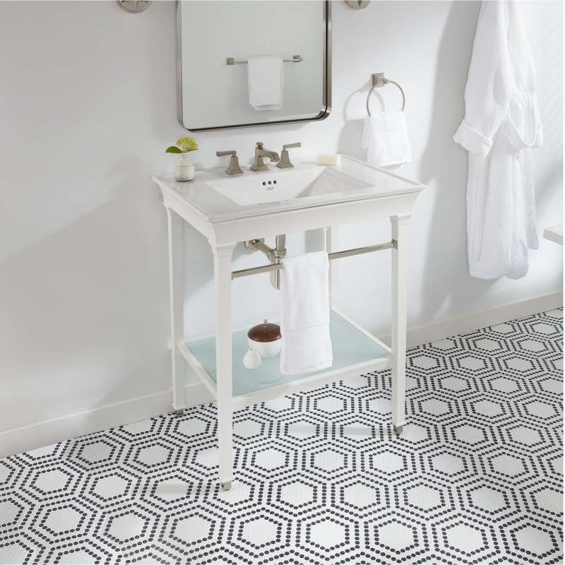 Classic American architecture designed for the modern life bathroom, incorporate architectural details such as crown molding & stately square shapes. The signature design elements carry across all of the collection pieces, with stylish designs that do not compromise on functionality, including: Flat, wide tank lid for placing bathroom accessories, large useful working spaces on the lavatories and Towel bar storage on the furniture.