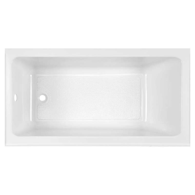 The Studio Above Floor Rough-In Bathtub from American Standard features a sleek, integral apron for compatibility with any bathroom design. Made of lightweight, high-gloss acrylic with durable fiberglass reinforcement, the spacious Studio Bathtub boasts a comfortable lumbar support and textured, slip-resistant surface for added safety. The Studio above-floor rough-in bathtub is designed with enough space to pipe directly under the bathtub without having to relocate the existing drain.