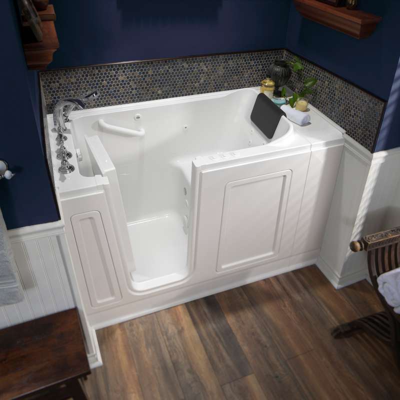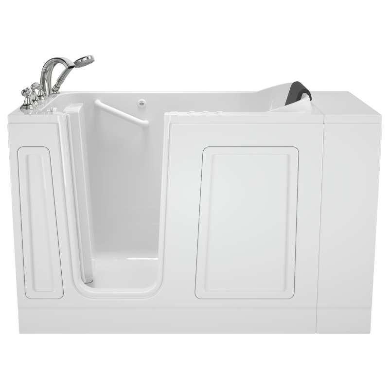 The American Standard 30-in x 51-in Acrylic walk-in bath provides a similar bathing experience to larger models but fits in smaller spaces and uses less water. The included tub extender allows this tub to retrofit in the same space as a standard bathtub. The full sized, contoured door with a low door threshold allows ease of entry and exit. Fully equipped, the 119 Luxury Series offers all the latest in safety and comfort features with the most advanced therapeutic options and backed by a lifetime warranty on the door seal, a 15 year warranty on the tub shell and a 10 year warranty on all other components.