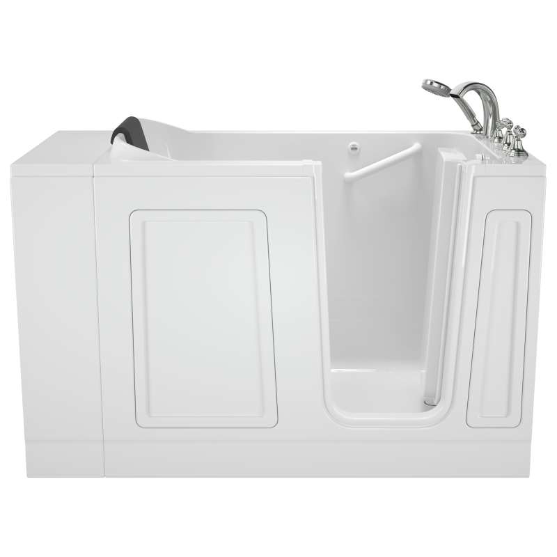 The American Standard 30-in x 51-in Acrylic walk-in bath provides a similar bathing experience to larger models but fits in smaller spaces and uses less water. The included tub extender allows this tub to retrofit in the same space as a standard bathtub. The full sized, contoured door with a low door threshold allows ease of entry and exit. Fully equipped, the 119 Luxury Series offers all the latest in safety and comfort features with the most advanced therapeutic options and backed by a lifetime warranty on the door seal, a 15 year warranty on the tub shell and a 10 year warranty on all other components.