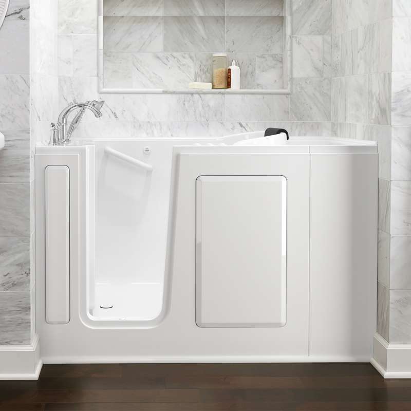 The American Standard 28-in x 48-in Gelcoat walk-in bath provides a similar bathing experience to larger models but fits in smaller spaces and uses less water. The included tub extender allows this tub to retrofit in the same space as a standard bathtub. The full sized, contoured door with a low door threshold allows ease of entry and exit. Fully equipped, the 609 Value Series offers all the latest in safety and comfort features with the most advanced therapeutic options and backed by a lifetime warranty on the door seal, a 10 year warranty on the tub shell and a 5 year warranty on all other components.
