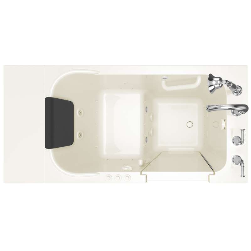 The American Standard 28-in x 48-in Gelcoat walk-in bath provides a similar bathing experience to larger models but fits in smaller spaces and uses less water. The included tub extender allows this tub to retrofit in the same space as a standard bathtub. The full sized, contoured door with a low door threshold allows ease of entry and exit. Fully equipped, the 609 Value Series offers all the latest in safety and comfort features with the most advanced therapeutic options and backed by a lifetime warranty on the door seal, a 10 year warranty on the tub shell and a 5 year warranty on all other components.