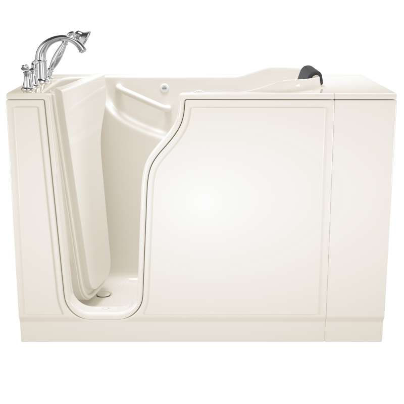 The American Standard 30-in x 52-in Gelcoat walk-in bath provides a similar bathing experience to larger models but fits in smaller spaces and uses less water. The included tub extender allows this tub to retrofit in the same space as a standard bathtub. The full sized, contoured door with a low door threshold allows ease of entry and exit. Fully equipped, the 609 Value Series offers all the latest in safety and comfort features with the most advanced therapeutic options and backed by a lifetime warranty on the door seal, a 10 year warranty on the tub shell and a 5 year warranty on all other components.