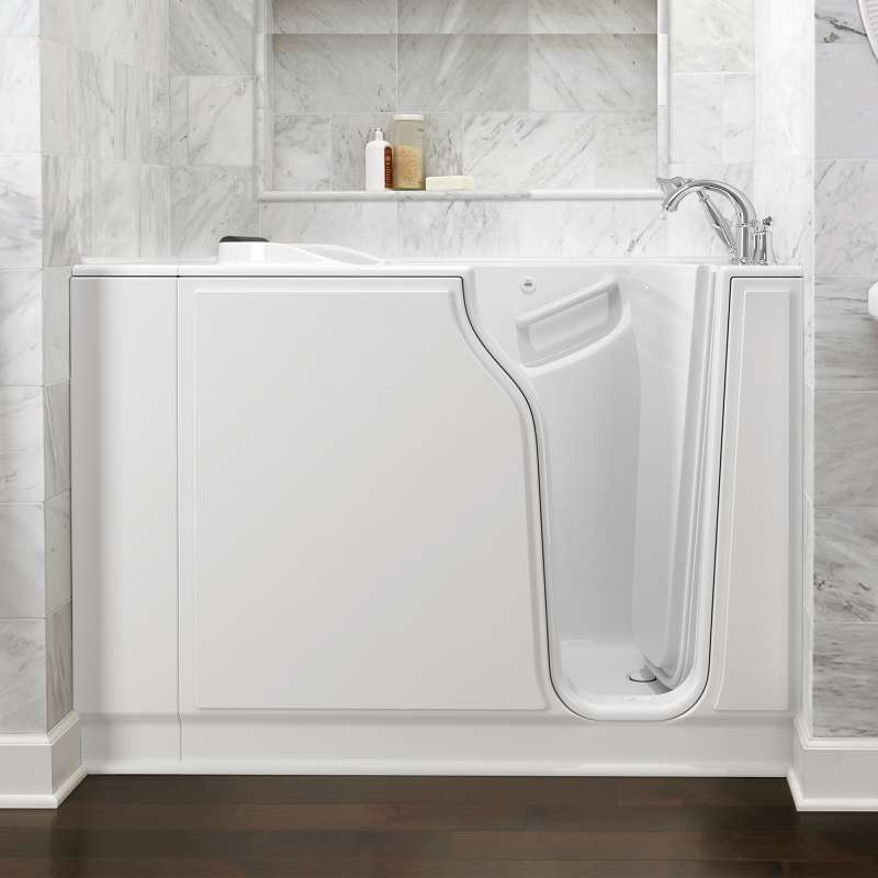 The American Standard 30-in x 52-in Gelcoat walk-in bath provides a similar bathing experience to larger models but fits in smaller spaces and uses less water. The included tub extender allows this tub to retrofit in the same space as a standard bathtub. The full sized, contoured door with a low door threshold allows ease of entry and exit. Fully equipped, the 609 Value Series offers all the latest in safety and comfort features with the most advanced therapeutic options and backed by a lifetime warranty on the door seal, a 10 year warranty on the tub shell and a 5 year warranty on all other components.