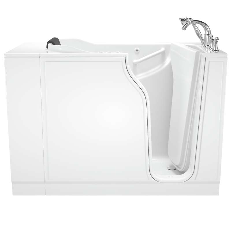 The American Standard 30-in x 52-in Gelcoat walk-in bath provides a similar bathing experience to larger models but fits in smaller spaces and uses less water. The included tub extender allows this tub to retrofit in the same space as a standard bathtub. The full sized, contoured door with a low door threshold allows ease of entry and exit. Fully equipped, the 609 Value Series offers all the latest in safety and comfort features with the most advanced therapeutic options and backed by a lifetime warranty on the door seal, a 10 year warranty on the tub shell and a 5 year warranty on all other components.
