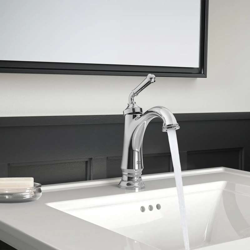 The Delancey Single-Hole Single-Handle Bathroom Sink Faucet from American Standard is defined by classic architectural details. An elegant complement to a single-hole sink, this bathroom faucet features a sturdy lever handle and the promise of reliable, drip-free performance for life. The Delancey bathroom faucet is available in an array of beautiful, on-trend finishes to accent the classic bathroom perfectly.
