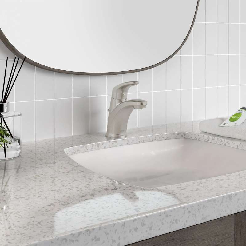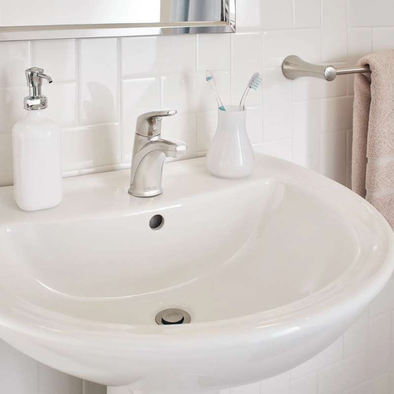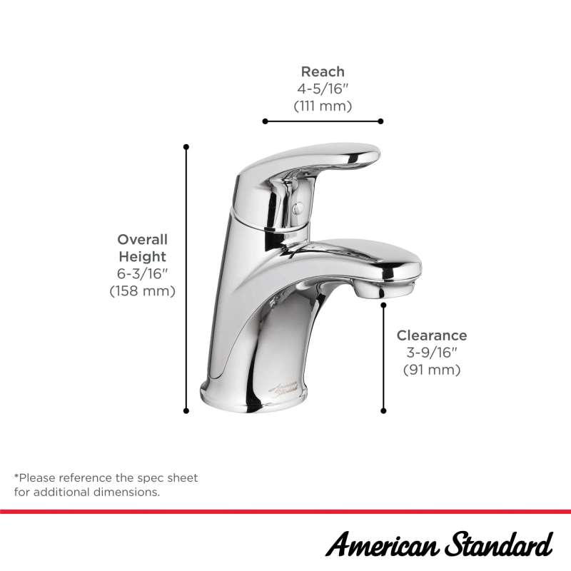 The Colony Pro single-handle bathroom faucet from American Standard provides excellent performance, style, and value. This faucet collection is WaterSense certified with a maximum flow rate of 1.2 gallons per minute, and provides comfortable handles for easy use and ADA compliance. Memory position valving allows the user to turn the faucet on and off at a preferred temperature without making any handle adjustments, while an adjustable hot limit safety stop helps to reduce the risk of accidental scalding.