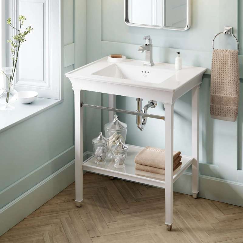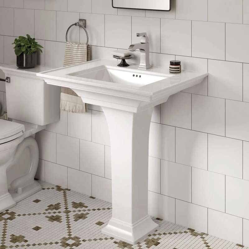 The Town Square S Single-Handle Faucet by American Standard makes a statement in the bathroom with its meticulously designed silhouette, detailed with architectural elements and inspiration from crown molding. This single-hole faucet is easy to install, with the inclusion of a push-pop drain, and can be installed on a 3-hole sink with the use of an optional escutcheon deck plate, sold separately. As an EPA WaterSense Certified faucet, with a maximum flow rate of 1.2 gallons per minute, the faucet helps to save water when compared to a standard faucet. Available in beautiful tarnish- and scratch-resistant finishes, the faucet also coordinates with the rest of the Town Square S collection, a full offering of bathroom fittings and fixtures, making your next bathroom remodel simple.