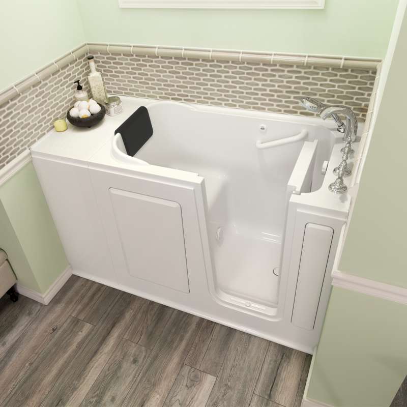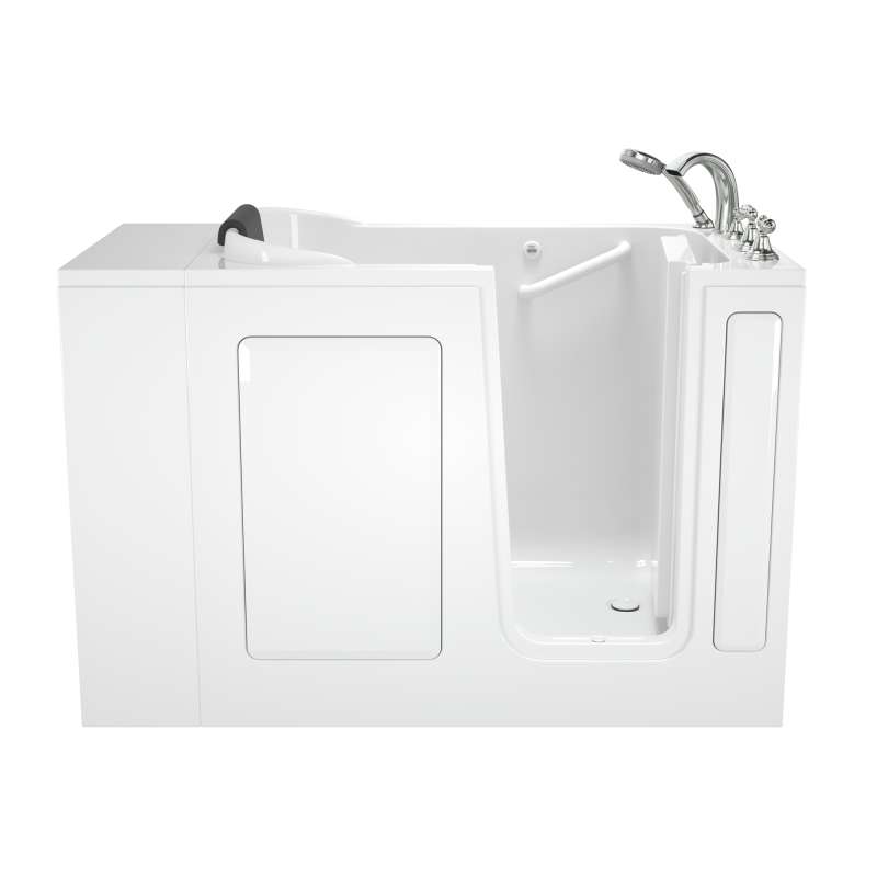 The American Standard 28-in x 48-in Gelcoat walk-in bath provides a similar bathing experience to larger models but fits in smaller spaces and uses less water. The included tub extender allows this tub to retrofit in the same space as a standard bathtub. The full sized, contoured door with a low door threshold allows ease of entry and exit. Fully equipped, the 109 Premium Series offers all the latest in safety and comfort features with the most advanced therapeutic options and backed by a lifetime warranty on the door seal, a 10 year warranty on the tub shell and a 5 year warranty on all other components.