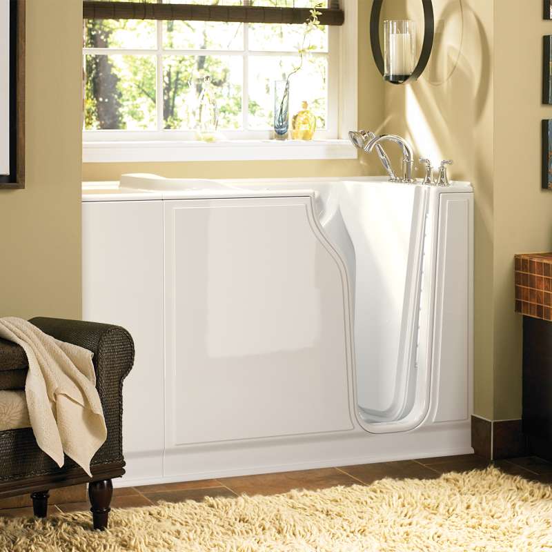 The American Standard 30-in x 52-in Gelcoat walk-in bath provides a similar bathing experience to larger models but fits in smaller spaces and uses less water. The included tub extender allows this tub to retrofit in the same space as a standard bathtub. The full sized, contoured door with a low door threshold allows ease of entry and exit. Fully equipped, the 509 Value Series offers all the latest in safety and comfort features bundled together at one low cost and backed by a lifetime warranty on the door seal, a 10 year warranty on the tub shell and a 5 year warranty on all other components.