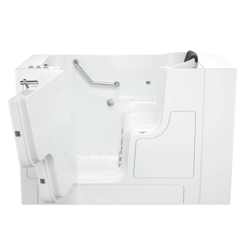 The American Standard 30-in x 52-in Gelcoat walk-in bath provides a similar bathing experience to larger models but fits in smaller spaces and uses less water. The included tub extender allows this tub to retrofit in the same space as a standard bathtub. The full sized, outward opening, contoured door with a low door threshold allows ease of entry and exit. Fully equipped, the 105 Premium Series offers all the latest in safety and comfort features with the most advanced therapeutic options and backed by a lifetime warranty on the door seal, a 10 year warranty on the tub shell and a 5 year warranty on all other components.