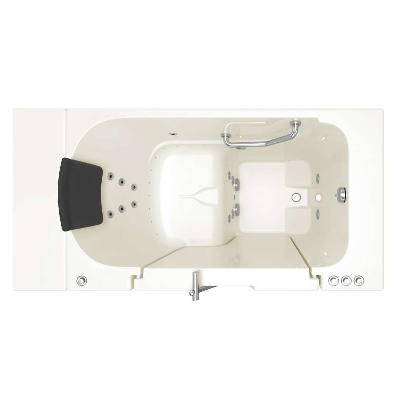 The American Standard 30-in x 52-in Gelcoat walk-in bath provides a similar bathing experience to larger models but fits in smaller spaces and uses less water. The included tub extender allows this tub to retrofit in the same space as a standard bathtub. The full sized, outward opening, contoured door with a low door threshold allows ease of entry and exit. Fully equipped, the 105 Premium Series offers all the latest in safety and comfort features with the most advanced therapeutic options and backed by a lifetime warranty on the door seal, a 10 year warranty on the tub shell and a 5 year warranty on all other components.