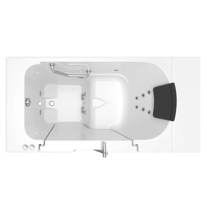 The American Standard 30-in x 52-in Gelcoat walk-in bath provides a similar bathing experience to larger models but fits in smaller spaces and uses less water. The included tub extender allows this tub to retrofit in the same space as a standard bathtub. The full sized, outward opening, contoured door with a low door threshold allows ease of entry and exit. Fully equipped, the 105 Premium Series offers all the latest in safety and comfort features with the most advanced therapeutic options and backed by a lifetime warranty on the door seal, a 10 year warranty on the tub shell and a 5 year warranty on all other components.
