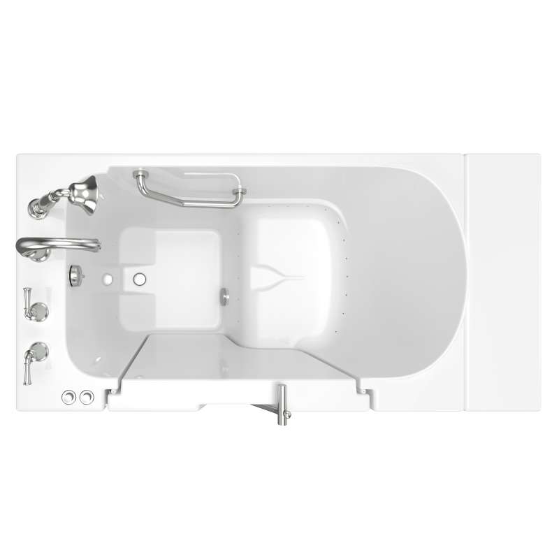The American Standard 30-in x 52-in Gelcoat walk-in bath provides a similar bathing experience to larger models but fits in smaller spaces and uses less water. The included tub extender allows this tub to retrofit in the same space as a standard bathtub. The full sized, outward opening, contoured door with a low door threshold allows ease of entry and exit. Fully equipped, the 709 Value Series offers all the latest in safety and comfort features with the most advanced therapeutic options and backed by a lifetime warranty on the door seal, a 10 year warranty on the tub shell and a 5 year warranty on all other components.