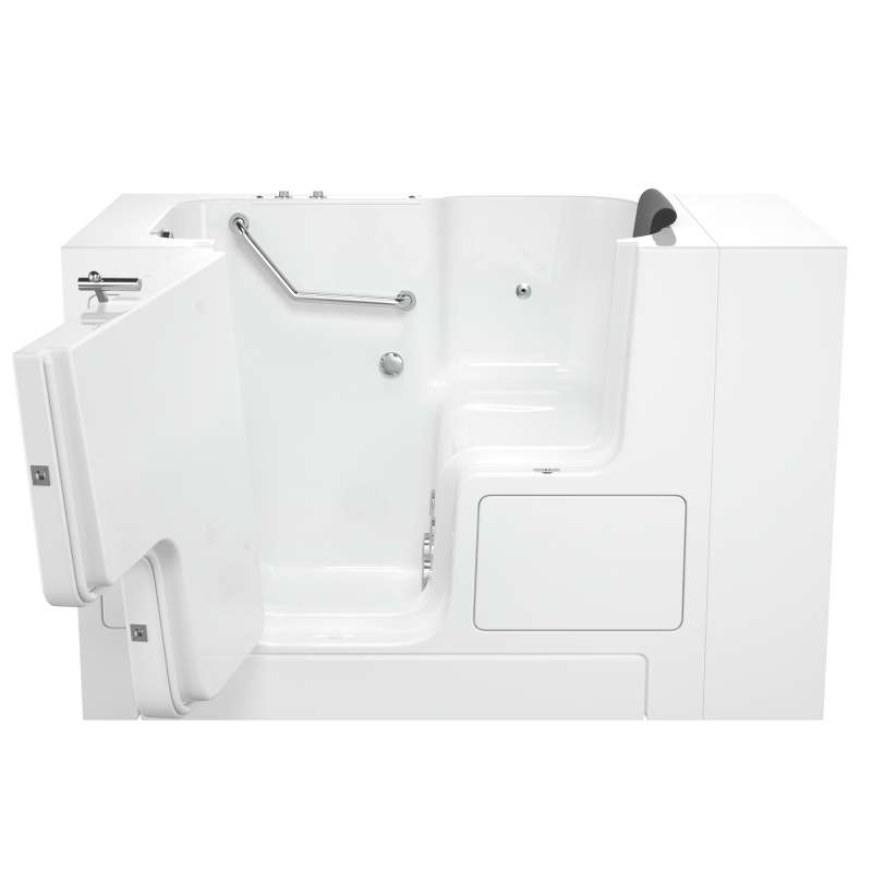 The American Standard 32-in x 52-in Gelcoat walk-in bath provides a similar bathing experience to larger models but fits in smaller spaces and uses less water. The included tub extender allows this tub to retrofit in the same space as a standard bathtub. The full sized, outward opening, contoured door with a low door threshold allows ease of entry and exit. Fully equipped, the 105 Premium Series offers all the latest in safety and comfort features with the most advanced therapeutic options and backed by a lifetime warranty on the door seal, a 10 year warranty on the tub shell and a 5 year warranty on all other components.