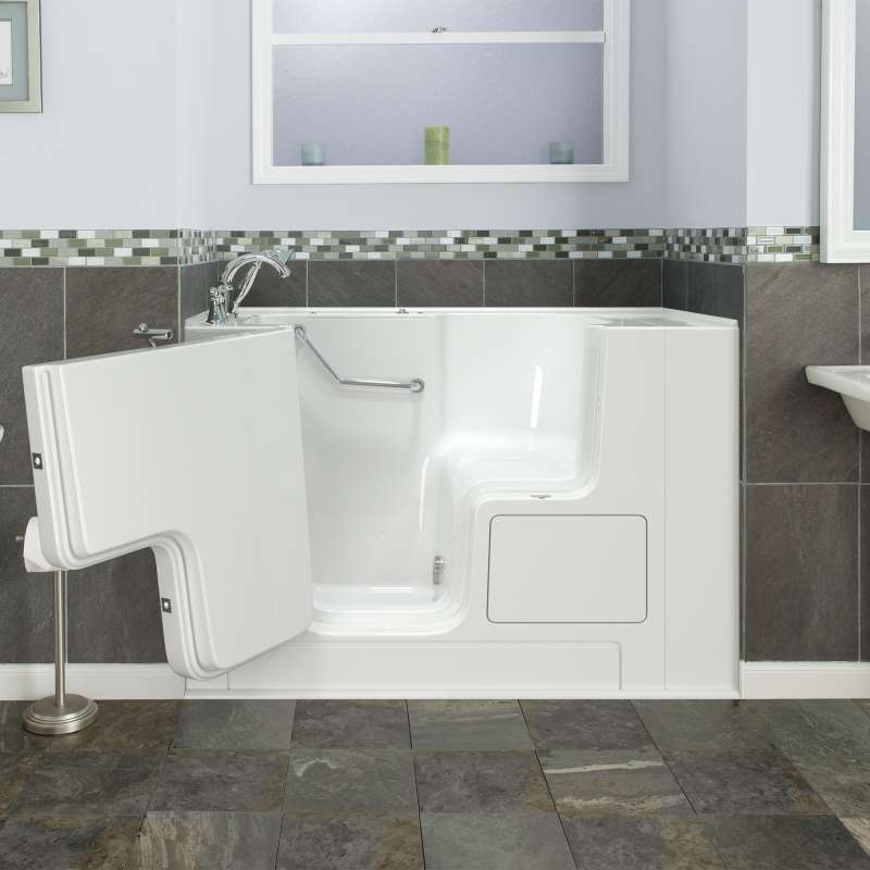 The American Standard 32-in x 52-in Gelcoat walk-in bath provides a similar bathing experience to larger models but fits in smaller spaces and uses less water. The included tub extender allows this tub to retrofit in the same space as a standard bathtub. The full sized, outward opening, contoured door with a low door threshold allows ease of entry and exit. Fully equipped, the 709 Value Series offers all the latest in safety and comfort features with the most advanced therapeutic options and backed by a lifetime warranty on the door seal, a 10 year warranty on the tub shell and a 5 year warranty on all other components.