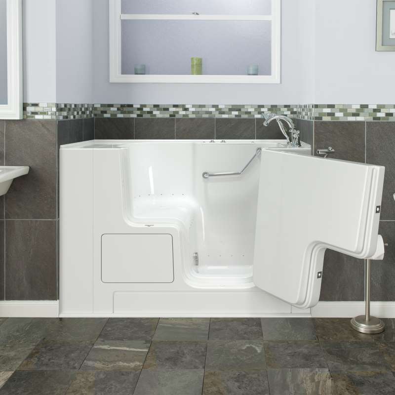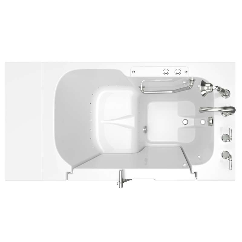The Safety Tubs 52-in x 32-in Gelcoat walk-in bath provides a similar bathing experience to larger models but fits in smaller spaces and uses less water. The included tub extender allows this tub to retrofit in the same space as a standard bathtub. The full sized, outward opening, contoured door with a low door threshold allows ease of entry and exit. Fully equipped, the Value Series offers all the latest in safety and comfort features bundled together at one low cost and backed by a lifetime warranty on the door seal, a 10 year warranty on the tub shell and a 5 year warranty on all other components.