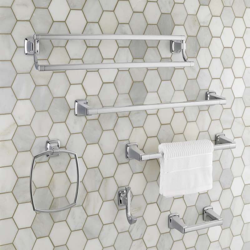 The Townsend robe hook from American Standard features a structured, tapered design that complements the rest of the products in the Townsend Collection. Offered in a wide range of beautiful finishes, the Townsend robe hook is made from quality metal construction for a product that withstands daily wear-and-tear. Easy to install, the robe hook also features a concealed mounting that hides set screws, giving your bathroom a professional, seamless appearance.