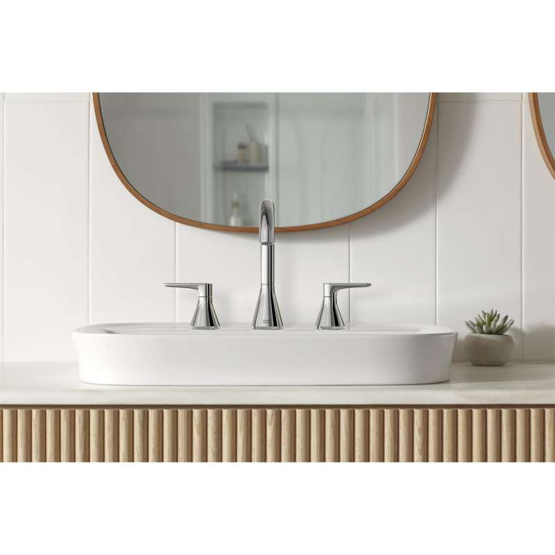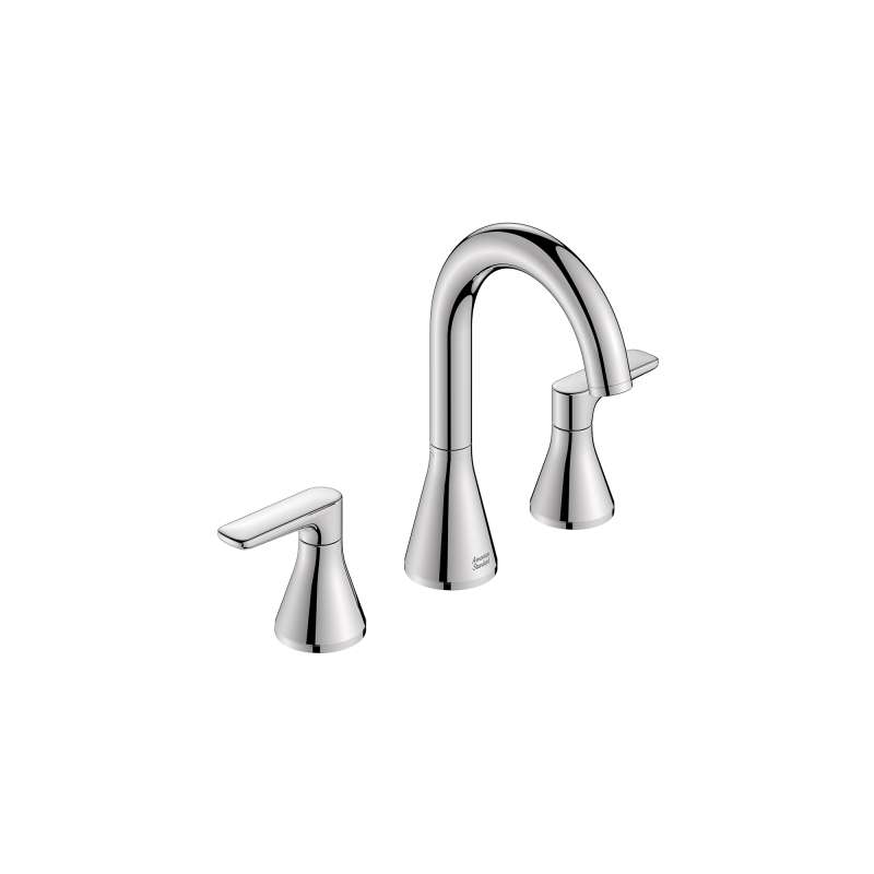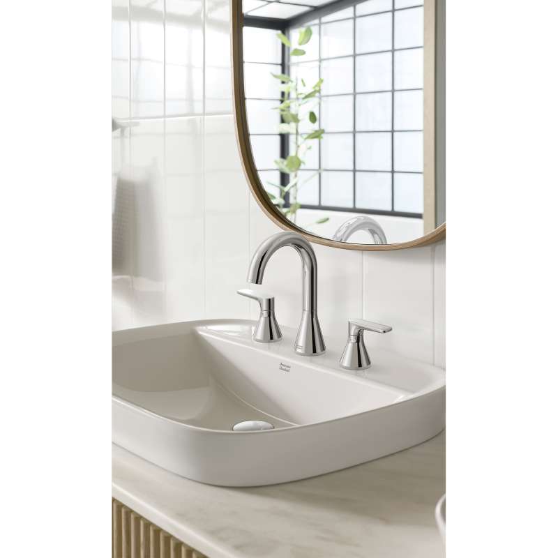 The Aspirations 8" Widespread Bathroom Faucet from American Standard has a high-arc, swivel spout for added versatility at the bathroom sink. This distinctive 3-hole bathroom faucet, with swivel spout, allows for complete clearance and access to the sink. Beautifully proportioned, this minimalist 3-hole faucet is the perfect choice for the busiest bathroom and its contemporary design complements the entire Aspirations collection.