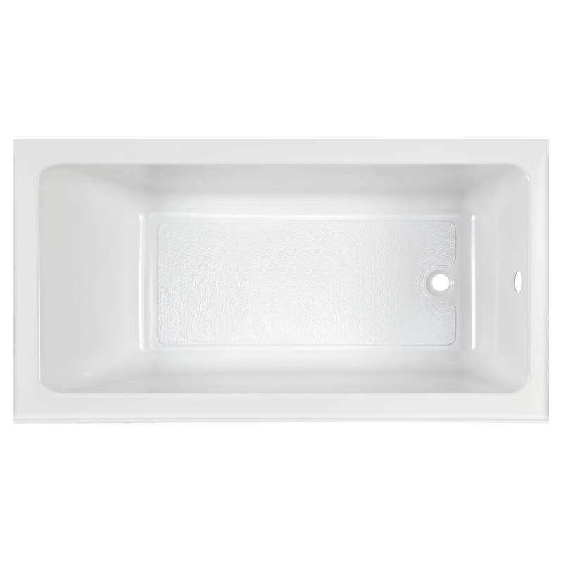 The Studio Above Floor Rough Bathtub from American Standard features a sleek, integral apron front for compatibility with any bathroom design. Made of high-gloss acrylic with durable fiberglass reinforcement, this spacious bathtub has lumbar support for comfort and a textured floor to help prevent slips and falls. For easy installation, this above-floor rough bathtub allows enough space to pipe directly under the bathtub without having to relocate the existing drain.