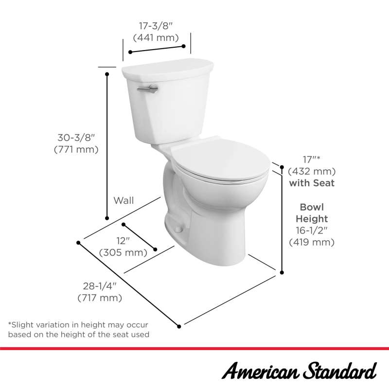 The Cadet Chair-Height Round-Front Toilet from American Standard is plumber tested and plumber approved. The Cadet is backed by an industry-leading warranty that includes limited lifetime on chinaware, limited 5 years on mechanical parts. A comfortable chair-height toilet, it features a round front to accommodate smaller bathrooms perfectly. This low-flow toilet uses just 1.6 gpf to help save water and ensures easy cleaning with its EverClean(R) antimicrobial surface to protect against mold, mildew, odor- and stain-causing bacteria.