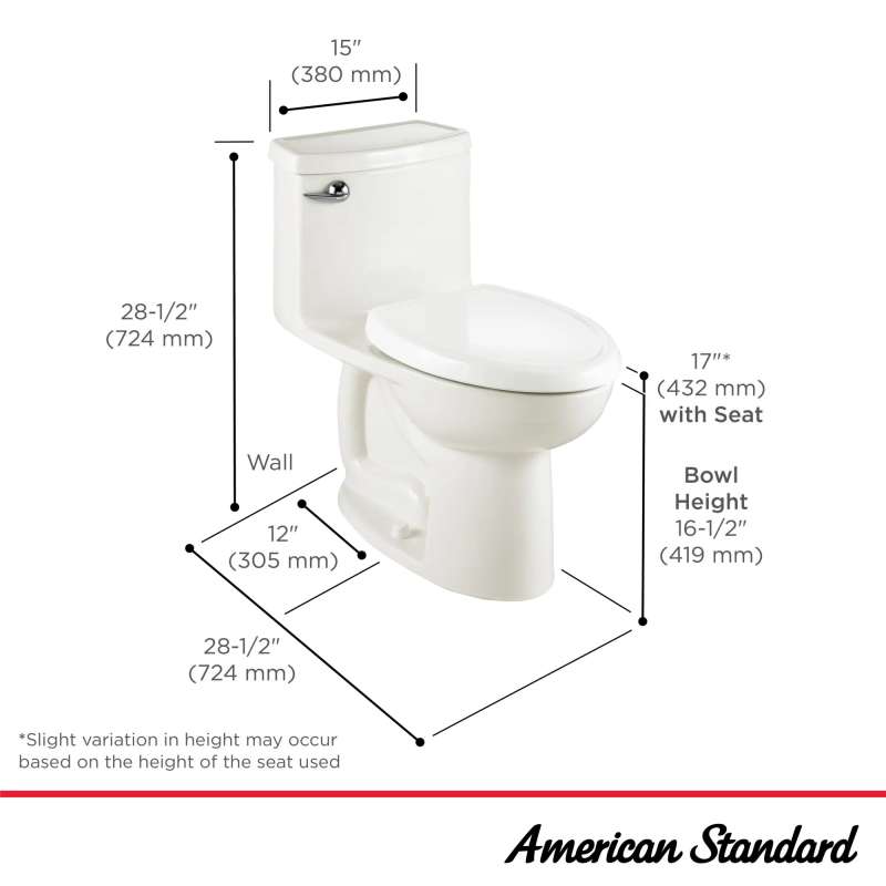 The Compact Cadet 3 FloWise Right Height Elongated Toilet from American Standard combines power, comfort and smart design in a seamless, one-piece style. This high-efficiency, ultra-low consumption toilet uses 20% less water than conventional toilets without sacrificing performance. The compact, elongated Cadet 3 is the perfect alternative to a round-front toilet, offering a comfortable height and sleek, elongated style, designed to fit where space is limited.