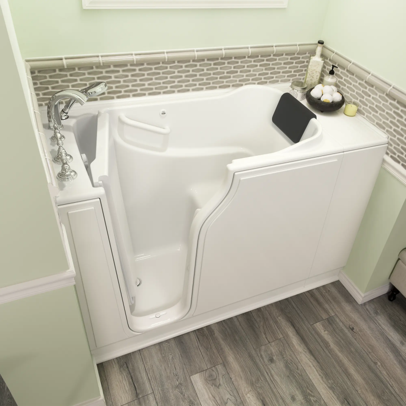 Gelcoat Premium Series 30 in. x 52 in. Soaking Walk-In Bathtub fits in smaller spaces and uses less water - the included Extender Kit makes it easy to retrofit in a standard-size bath space. Fully equipped, the Premium Series offers all the latest in safety and comfort features with the most advanced therapeutic option.