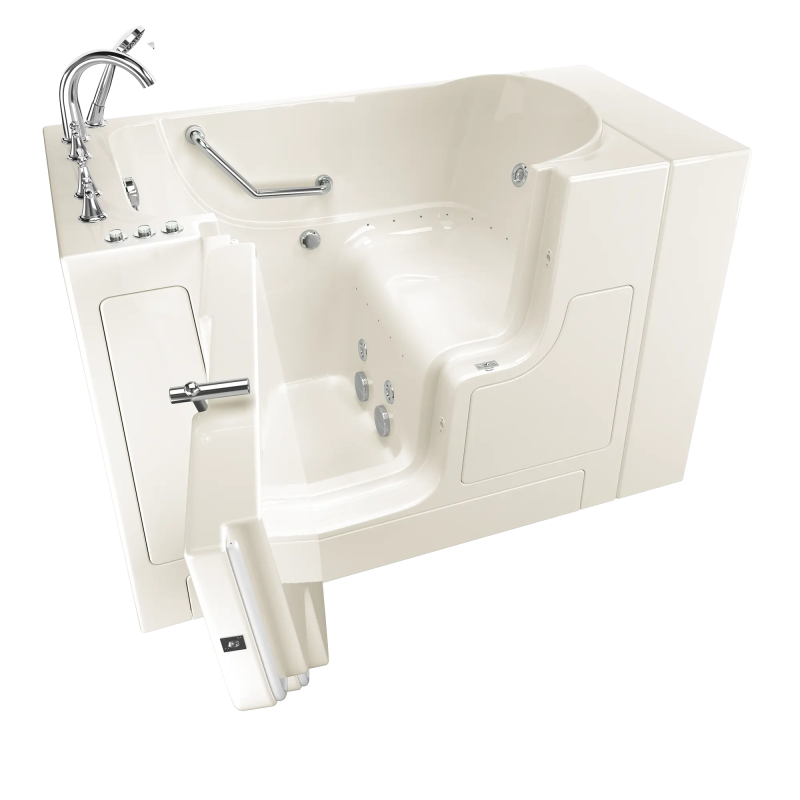 Gelcoat Value Series 30 in. x 52 in. Outward Opening Door Walk-In Bathtub with Combination Air Spa system and Whirlpool Massage system fits in smaller spaces and uses less water - the included Extender Kit makes it easy to retrofit in a standard-size bath space. Fully equipped, it offers all the latest in safety and comfort features with the most advanced therapeutic option.