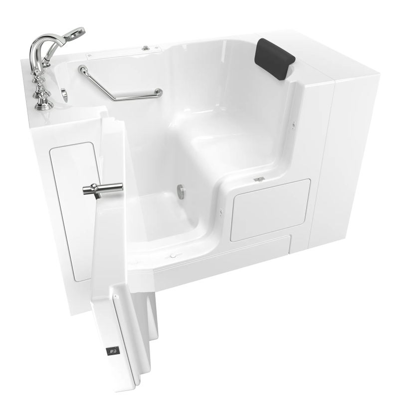 Gelcoat Premium Series 32 in. x 52 in. Outward Opening Door Soaking Walk-In Bathtub fits in smaller spaces and uses less water-the included Extender Kit makes it easy to retrofit in a standard-size bath space - fully equipped, the Premium Series offers all the latest in safety and comfort features wtih the most advanced therapeutic option