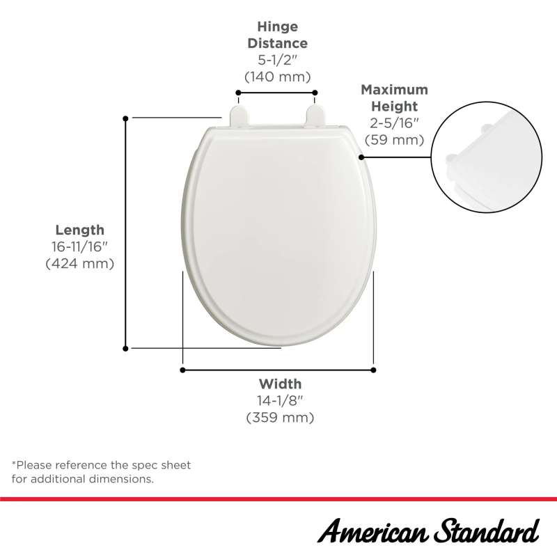 The Traditional Slow-Close Round Front Toilet Seat from American Standard features quiet-close hinges to eliminate the noise of sudden slamming. Designed to fit most round front toilets, this traditional style toilet seat is enhanced with sought-after features including an EverClean antimicrobial surface, quick-release hinges to easily remove and replace the seat for cleaning, and the Ever-Tite(R) locking system to stop side-to-side shifting. All mounting hardware is included. Fits most round-front toilets.
