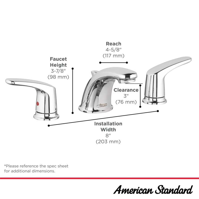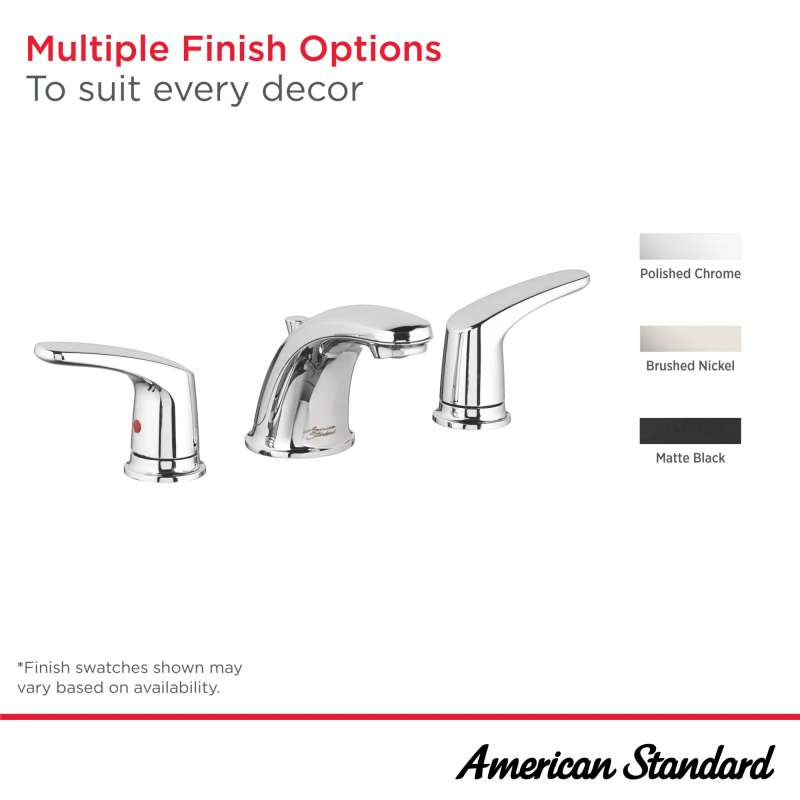 The Colony Pro Widespread bathroom faucet from American Standard combines the very best in quality, value, and performance. The Colony Pro is a faucet that you can rely on for both functionality and style. Our exclusive Speed Connect system makes installation easy. WaterSense certification ensures a flow rate of 1.2 gallons per minute to help save water.