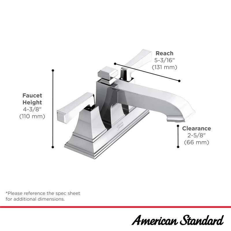 The Town Square S Centerset Faucet by American Standard is a paragon of classic elegance, featuring architecturally inspired details reminiscent of crown molding. This stately faucet is crafted from solid brass, making it a durable choice, ideal for prolonged contact with water. Available in tarnish- and scratch-resistant finishes, the Town Square S faucet will stay looking like new for years. A pop-up drain is included, for easy installation and use. Part of the Town Square S collection, the faucet is easy to match with the rest of the suite's fittings and fixtures, for a total design solution that makes remodeling a perfectly matched bathroom effortless.