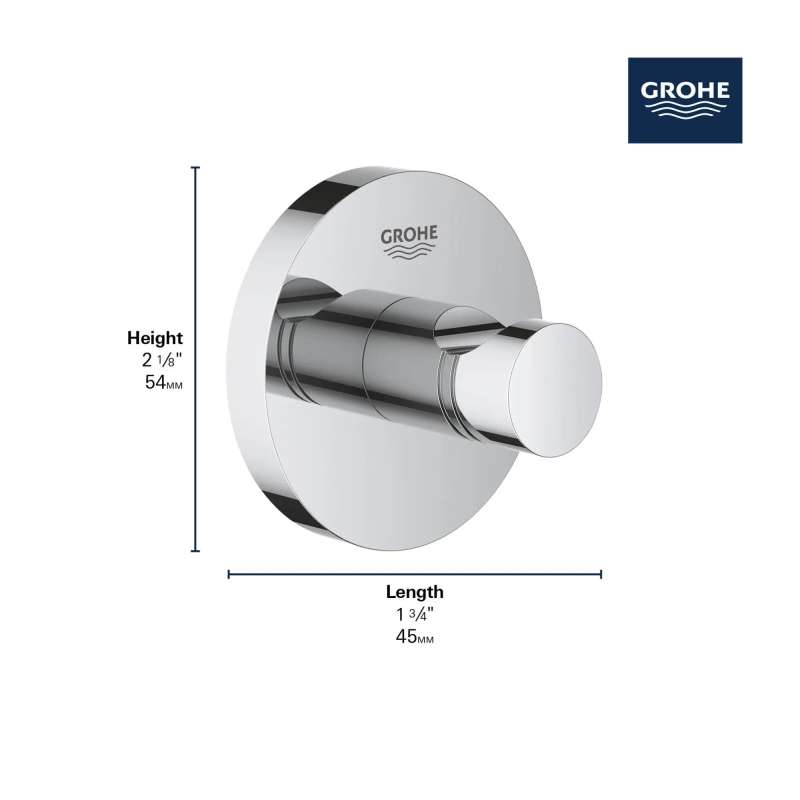Clean, simple lines make the Essentials Robe Hook the perfect complement for any bathroom design. Made of metal with a tarnish- and scratch-resistant finish for durability and lasting luster.