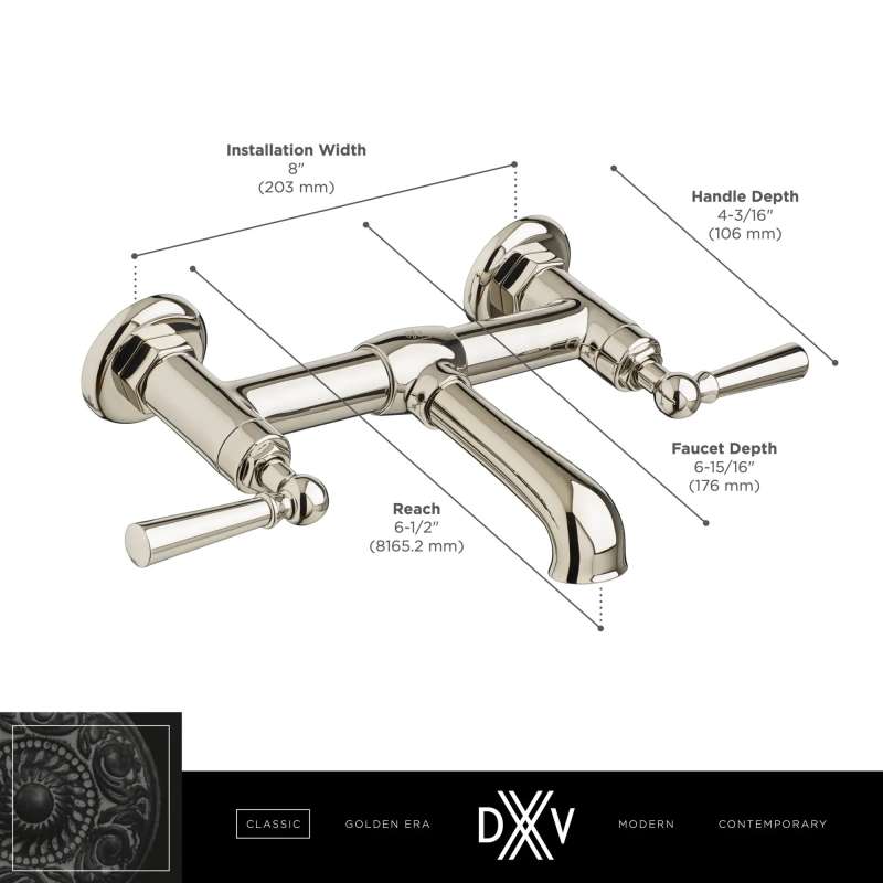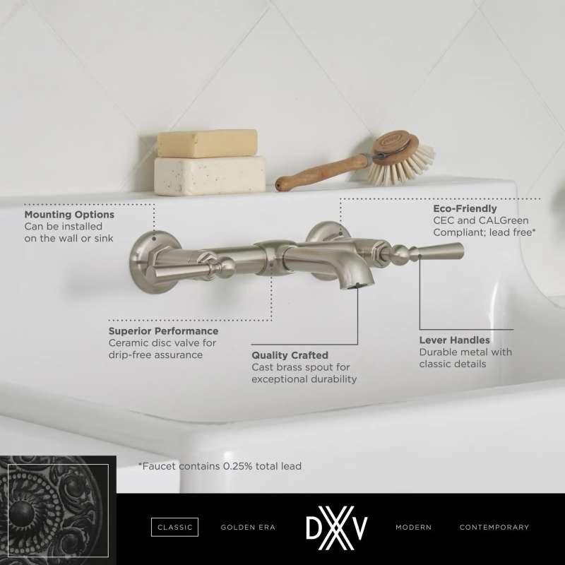 The Oak Hill Wall-Mount Faucet from DXV brings the charm and lasting appeal of the traditional farmhouse aesthetic into today's home. Designed to preserve the authenticity and spirit of the period, the Oak Hill Faucet reflects the simple, stoic character that balances utility and beauty in statement-making style. The Oak Hill Faucet is part of the Oak Hill Collection, a complete, curated bathroom suite for the well-appointed home. Available in four beautiful finishes.