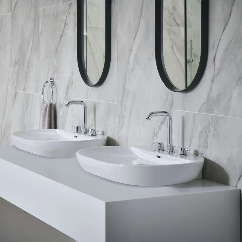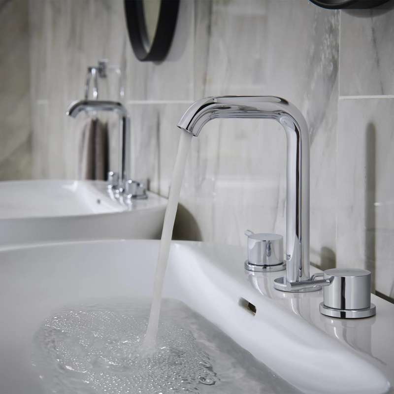Sleek and sophisticated, the GROHE Essence 8-Inch Widespread Two-Handle Bathroom Faucet is a distinctive style with two lever handles. This water-saving faucet reduces water usage while providing superior performance. Available in an array of exquisite, on-trend finishes. The Essence widespread bathroom faucet embodies all the elements of precision craftsmanship and design excellence.