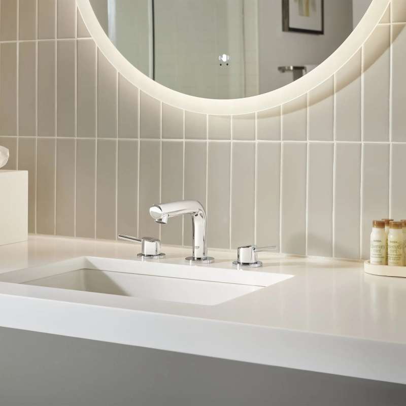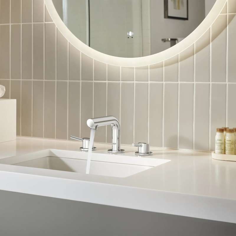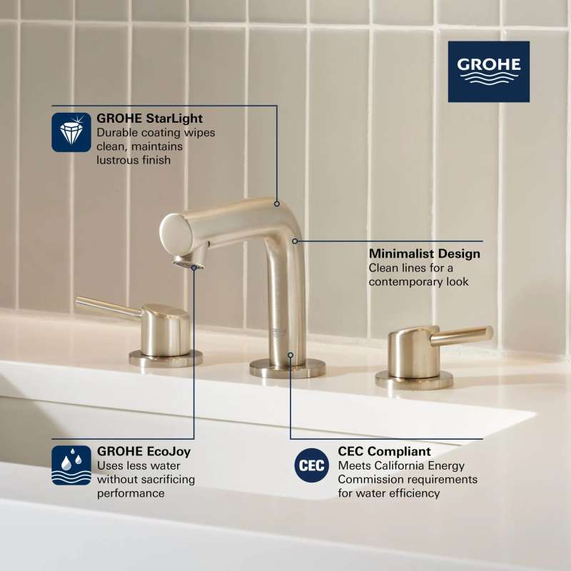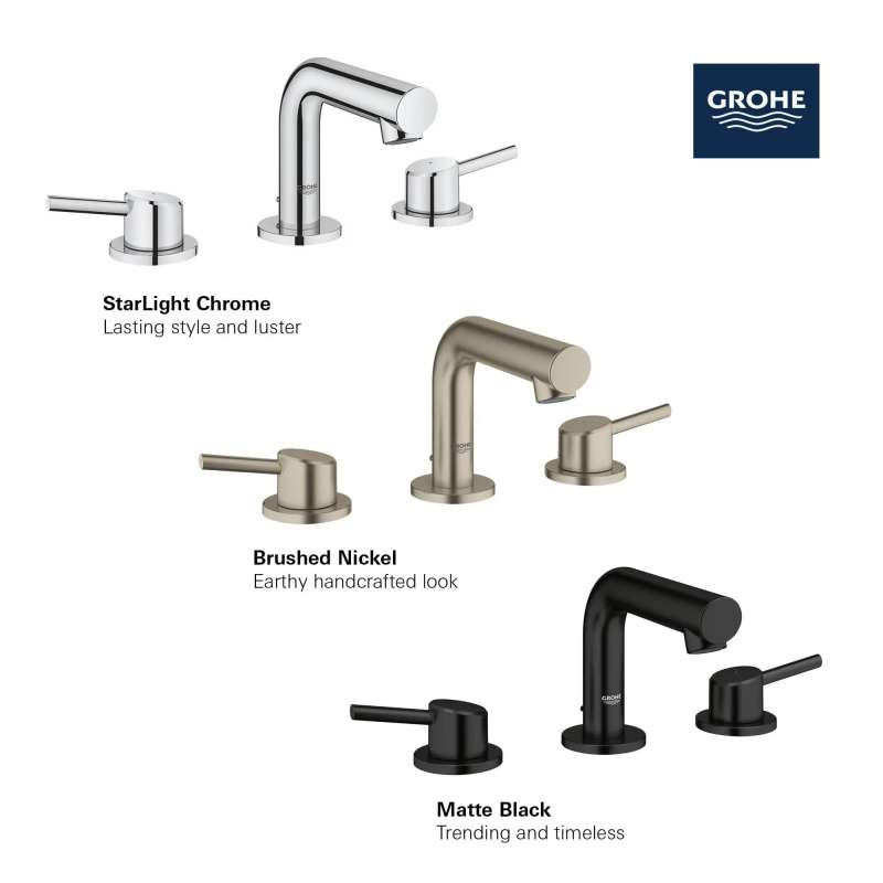 The GROHE Concetto 8-in. Widespread Bathroom Faucet is a clean, sophisticated faucet defined by a gently curved spout and slanted aerator to direct the flow of water outward for added ease of use and comfort. Metal lever handles ensure smooth control of water flow and temperature with the exacting precision characteristic of the GROHE standard of excellence. Available in an array of exquisite finishes that add interest to every bathroom.