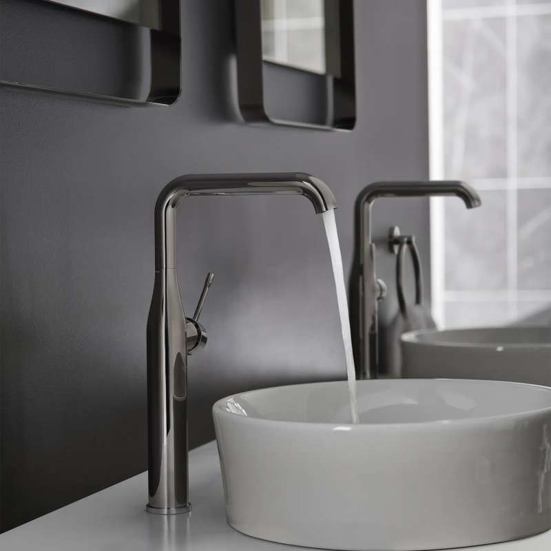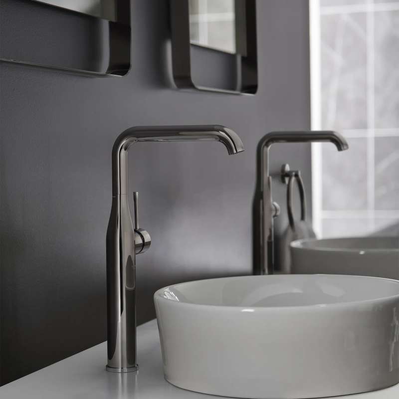 Sleek and sophisticated, the GROHE Essence Single-Handle Single-Hole Bathroom Faucet is a distinctive style with a gently curved swivel spout and side lever handle. The perfect size for a vessel sink, this water-saving faucet reduces water usage while providing superior performance. Available in an array of exquisite, on-trend finishes. The Essence single-handle vessel-sink bathroom faucet embodies all the elements of precision craftsmanship and design excellence.