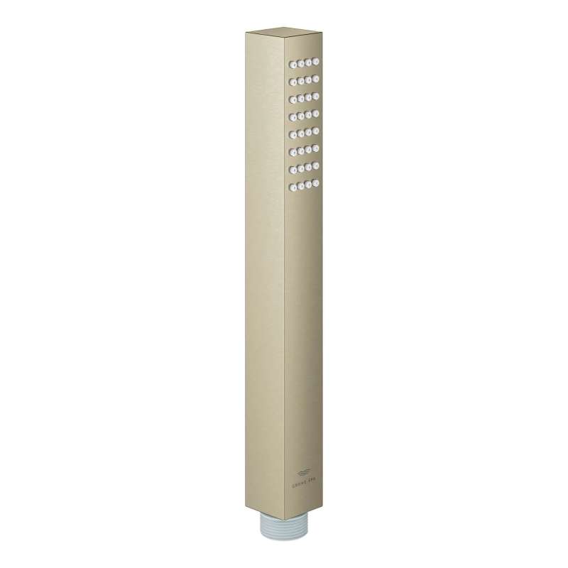 The GROHE SPA Euphoria Cube Stick Hand Shower is a sleek addition to a luxurious spa bathroom. Designed to fit all standard shower hoses, this durable metal hand shower features exclusive GROHE technologies including GROHE DreamSpray that delivers balanced water flow from every nozzle for a more enjoyable shower experience.