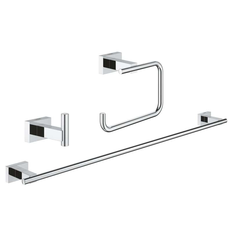 The geometric lines of this Essentials Cube 3-in-1 Accessory Set make it ideal in the contemporary or modern bathroom and the perfect complement to GROHE bath faucet collections.