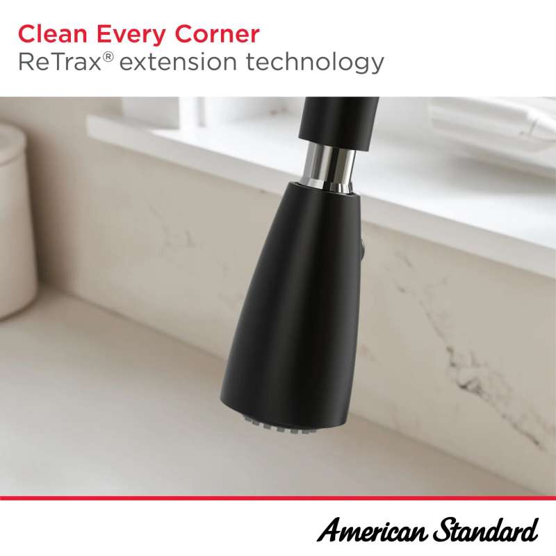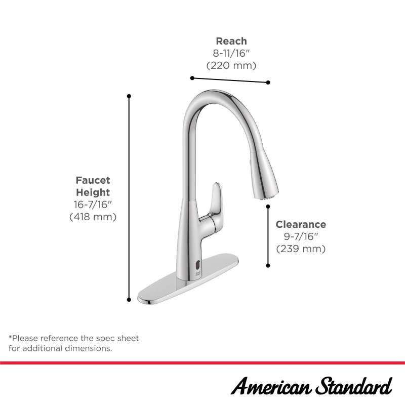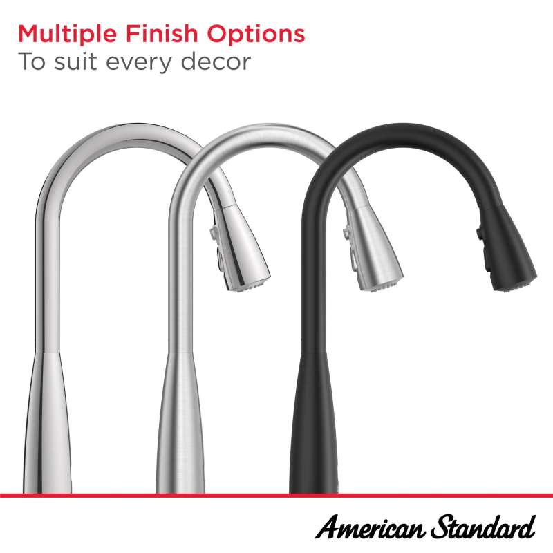 The Colony PRO Touchless Single-Handle Kitchen Faucet from American Standard is equipped with our dependable Selectronic(R) infrared sensor that turns the faucet on and off with just a wave of your hand. A touchless, hands-free faucet design provides added convenience and a more hygienic environment by helping to reduce the spread of germs. This contemporary, drip-free faucet features a high-arc swivel spout and dual function, pull-down spray head with stream to quickly fill large pots, spray for easy rinsing, and pause to stop water without turning off the faucet.