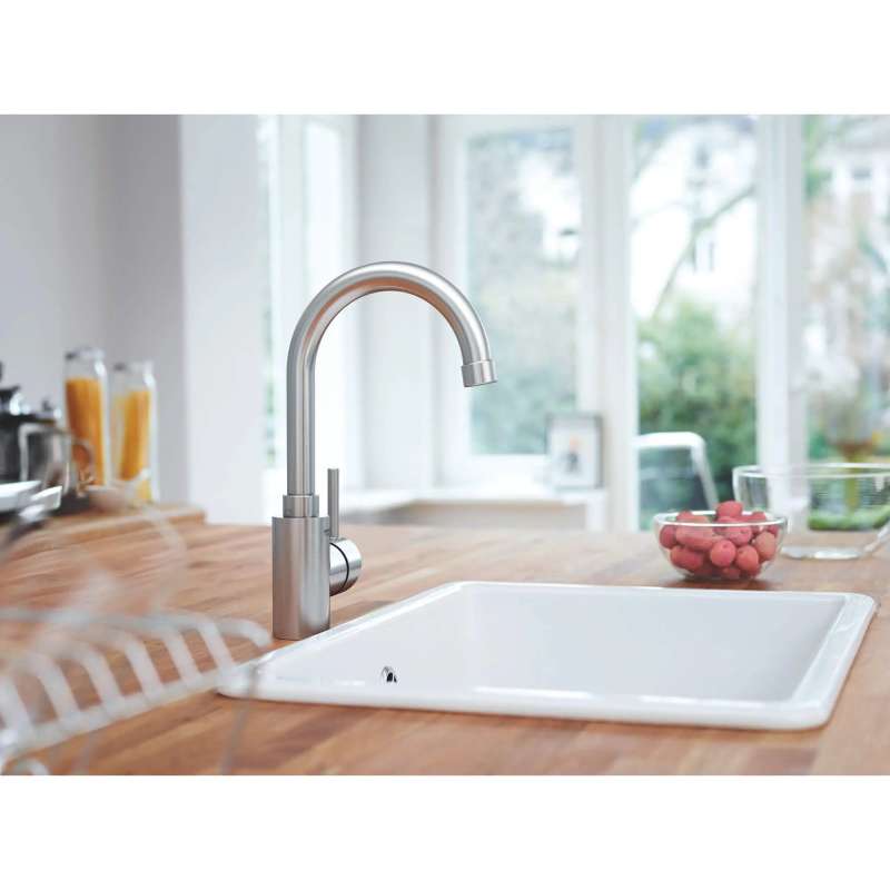 The GROHE Concetto Single-Handle Bar Faucet is sleek, sophisticated and engineered for superior performance. Perfect for entertaining, the Concetto bar faucet is meticulously crafted with a high, swivel spout and lever handle that offers precise control of water pressure and temperature.