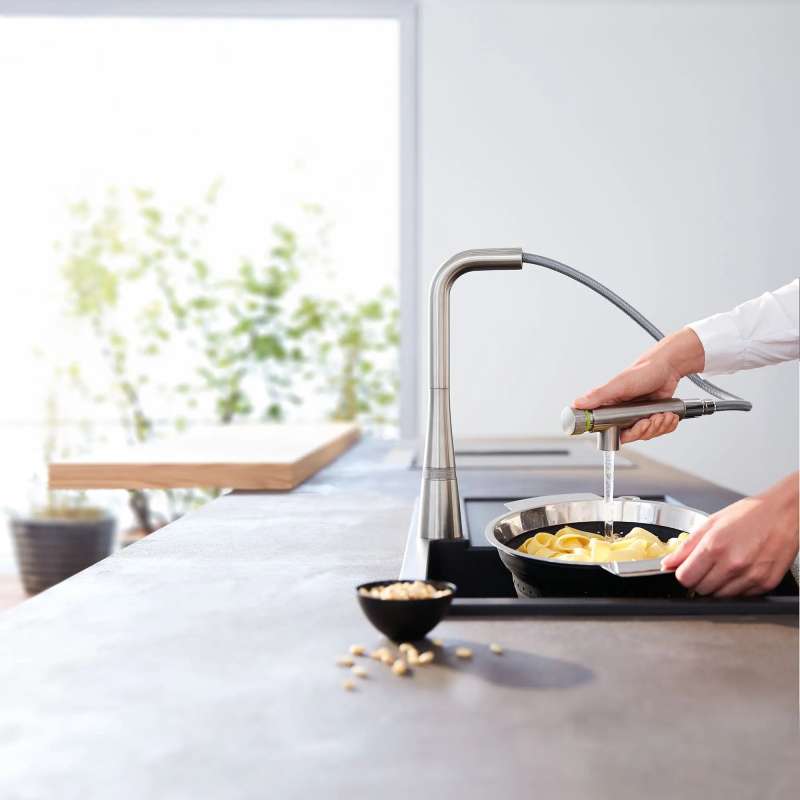 GROHE Zedra SmartControl Pull-Out Single Spray Kitchen Faucet 1.75 GPM (6.6 L/min), 31559DC2 Supersteel