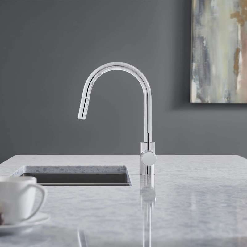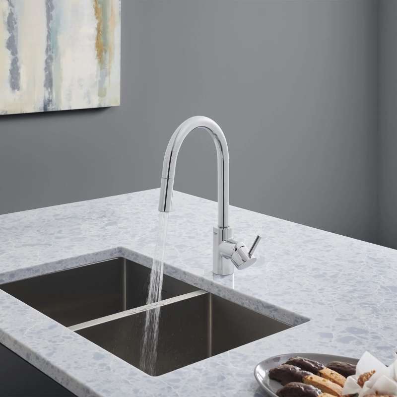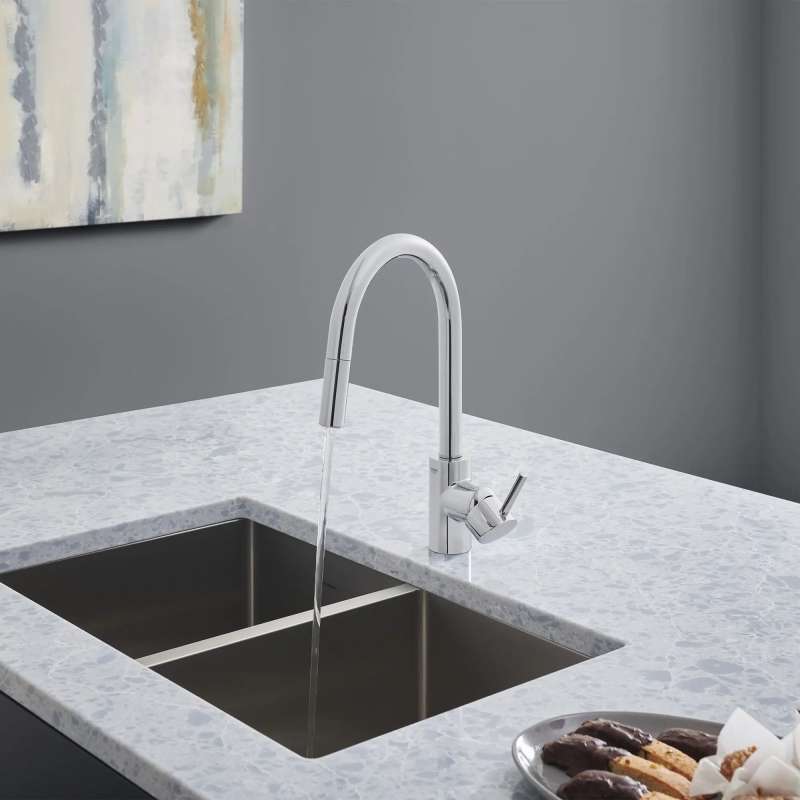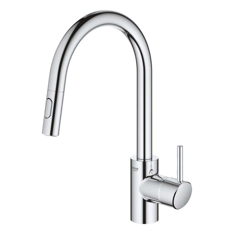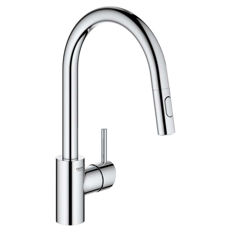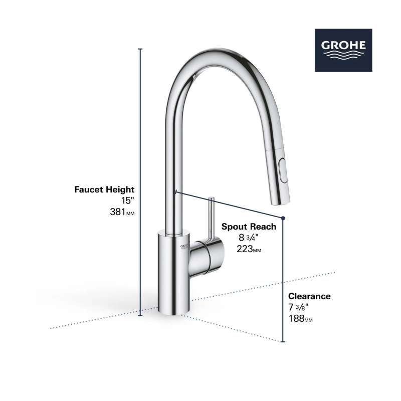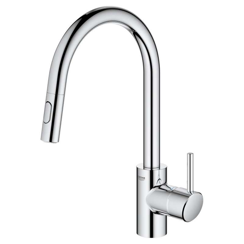 The GROHE Concetto Dual Spray Pull-Down Kitchen Faucet is a single-handle faucet engineered for superior performance. Convenient pull-down sprayer easily toggles between regular water flow and spray for maximum versatility. Meticulously crafted with a high, swivel spout, this contemporary kitchen faucet makes it easy to fill large pots, access the entire sink and complete kitchen tasks quickly. Sleek lever handle offers precise control of water pressure and temperature.