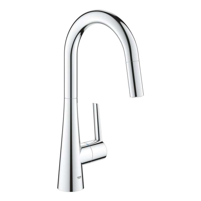 The GROHE Zedra Pull-Down Kitchen Faucet with Dual-Function Spray Head has a contemporary look and innovative technology. This sleek, single-handle faucet features a pull-down spray head with button to easily switch between regular stream and shower spray functions. The Zedra kitchen faucet is the perfect combination of style and substance for today's home. GROHE Zedra is the new name for Ladylux L2.