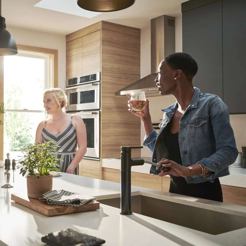 Thoughtful design makes all the difference in the presence and performance of the Studio S Pull-Out Dual-Spray Kitchen Faucet from American Standard. Contemporary cylinder profile is the ideal height for smaller sink areas while providing ample clearance for filling pots with ease. The pull-out spray head features a toggle to switch from stream to powerful spray functions, making every task quick and easy. Studio S is engineered to ensure drip-free performance and add distinction to your kitchen design.