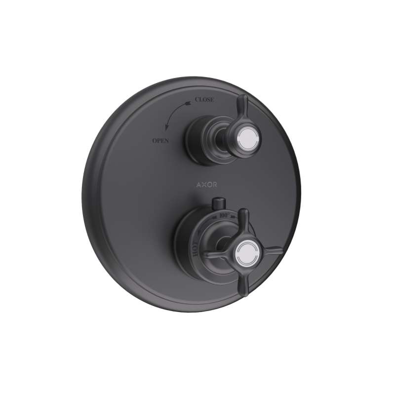 Axor Montreux Thermostatic Trim With Volume Control- Cross-Handle In Brushed Black Chrome, 16817341 Brushed Black Chrome