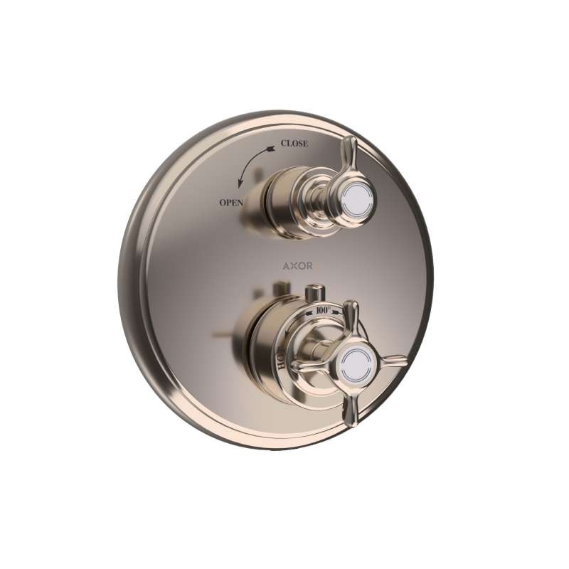 Axor Montreux Thermostatic Trim With Volume Control- Cross-Handle In Polished Nickel, 16817831 Polished Nickel