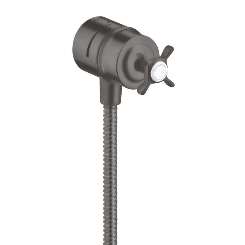 Axor Montreux Wall Outlet With Check Valves And Volume Control, Cross Handle In Brushed Black Chrome, 16882341 Brushed Black Chrome